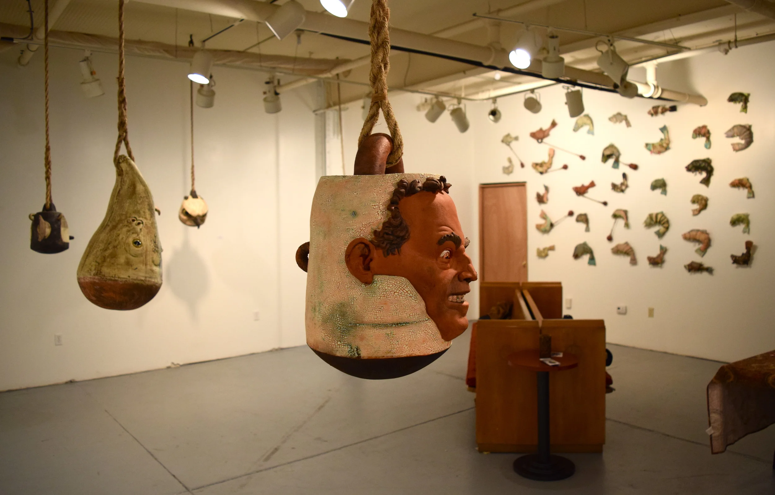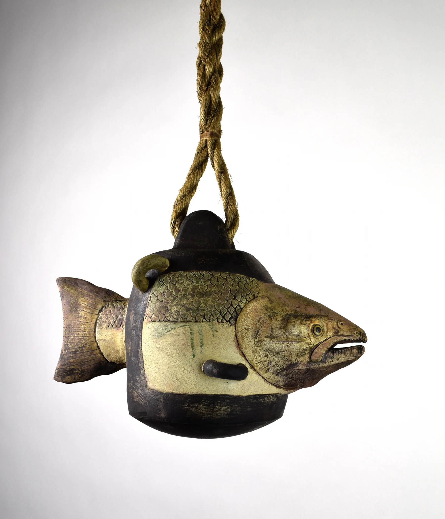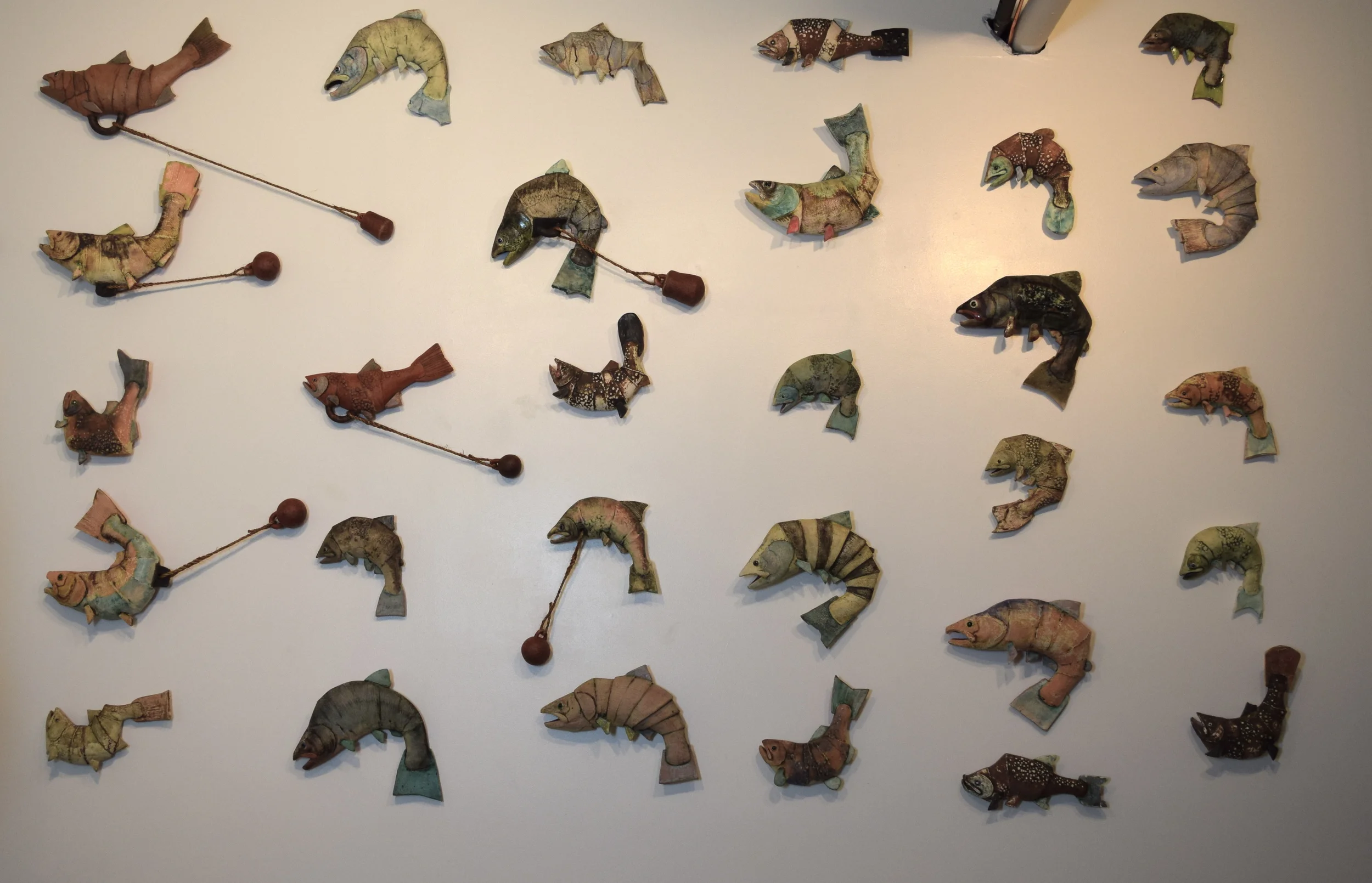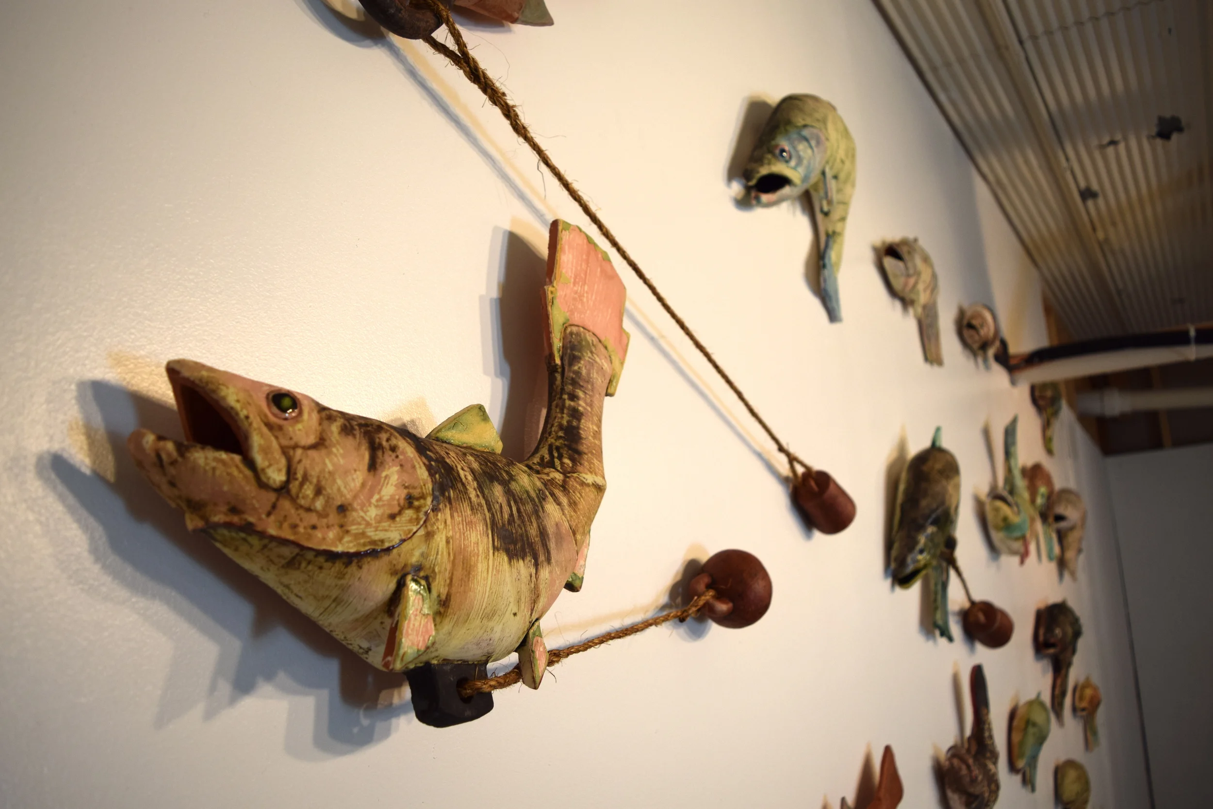 Much of the work in this exhibition is inspired by the challenges that fish species encounter as they migrate to spawn, as well as animals that depend on their survival. The animals and figures in this exhibition are given a metaphorical capacity to demolish obstacles in the way of migrating fish.